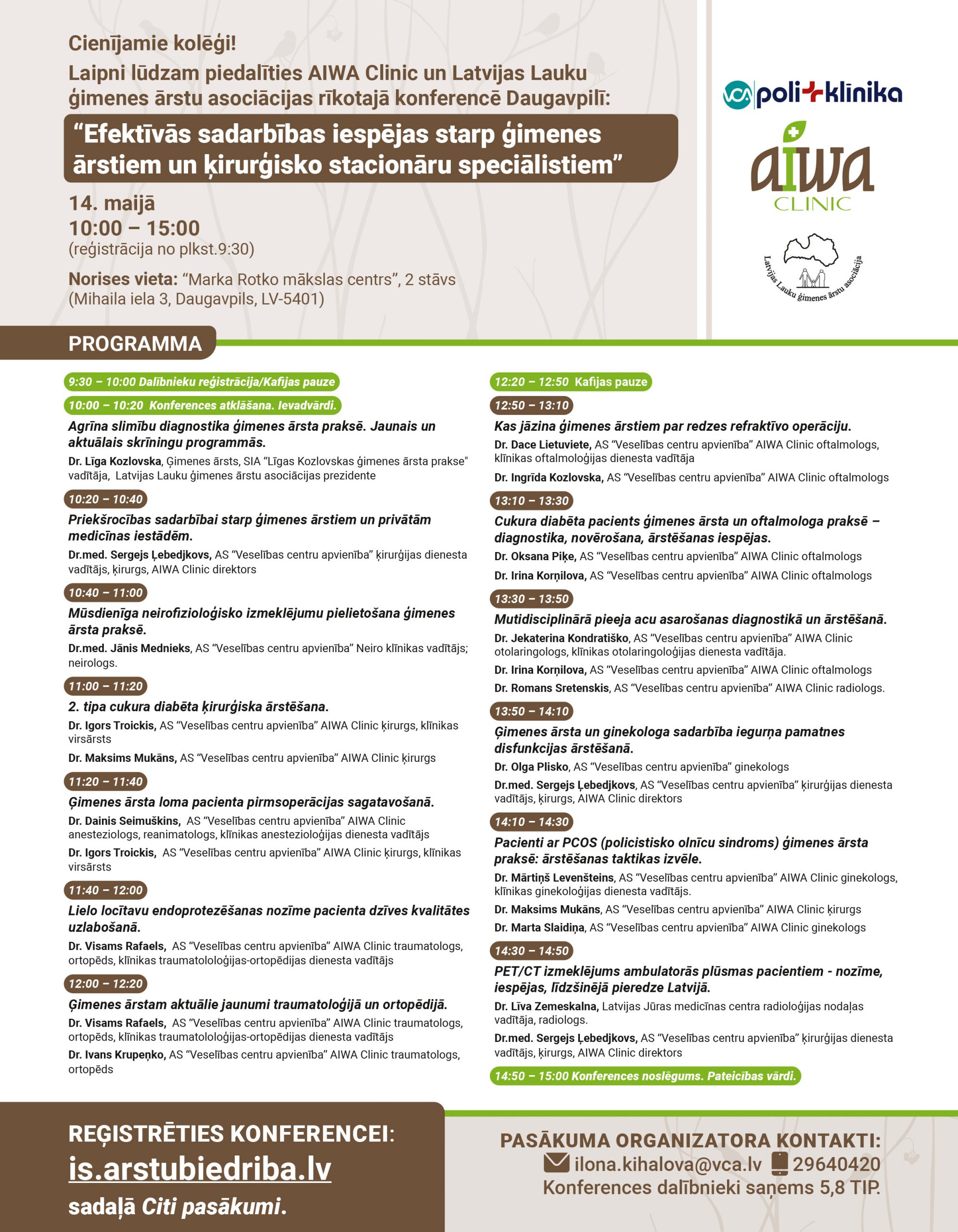 Laiks: 10:00 – 15:00 (reģistrācija no plkst.9.30)