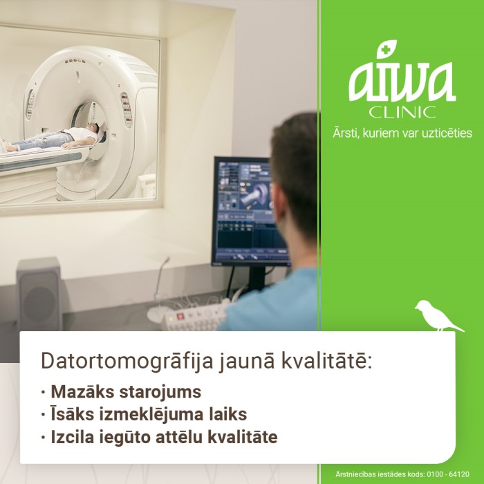 Uz izmeklējumu pieteikties aicinām pa tālruni 20022581, e-pastu: info@aiwaclinic.lv vai ieej.lv/Datortomografija_AIWA