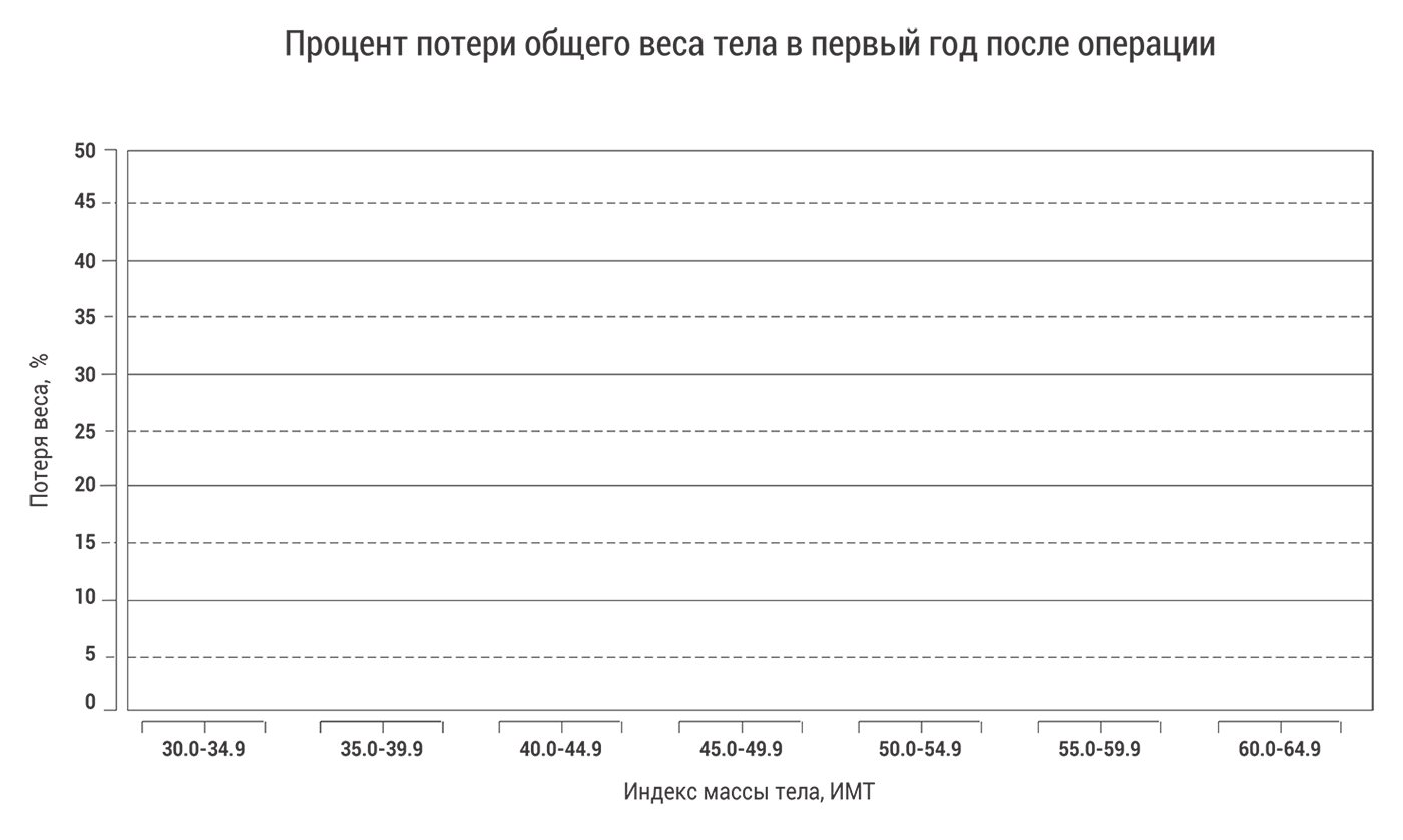 - Потеря веса такая же как при операции обходного желудочного анастомоза, однако, если у пациента большой избыточный вес и высокий ИМТ, эффективность снижается.